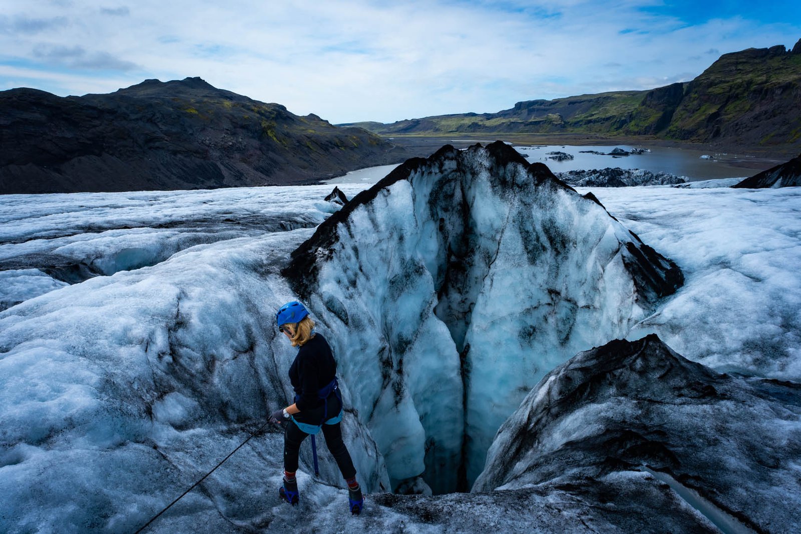 The walk from the parking lot to the glacier is short and easy, and we’ll pass a beautiful glacier lagoon along the way—no previous hiking experience needed. Once we step onto the ice, it’s important to have an extra layer with you. Weather in Iceland can change quickly, so packing additional clothing is always a good idea.