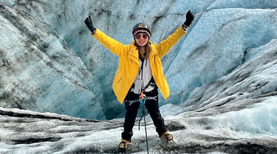 Once we arrive, we will have a briefing that includes instructions on how to use crampons and an ice axe and as well as how to behave on ice. After that, we have 20 minutes to reach the outlet glacier. Since it is a private tour, the pace will be adjusted to everyone’s fitness level. During our hike, we will try to find different ice formations, crevasses, and maybe even caves. Our guide and photographer will capture all this experience to make it all more memorable.
